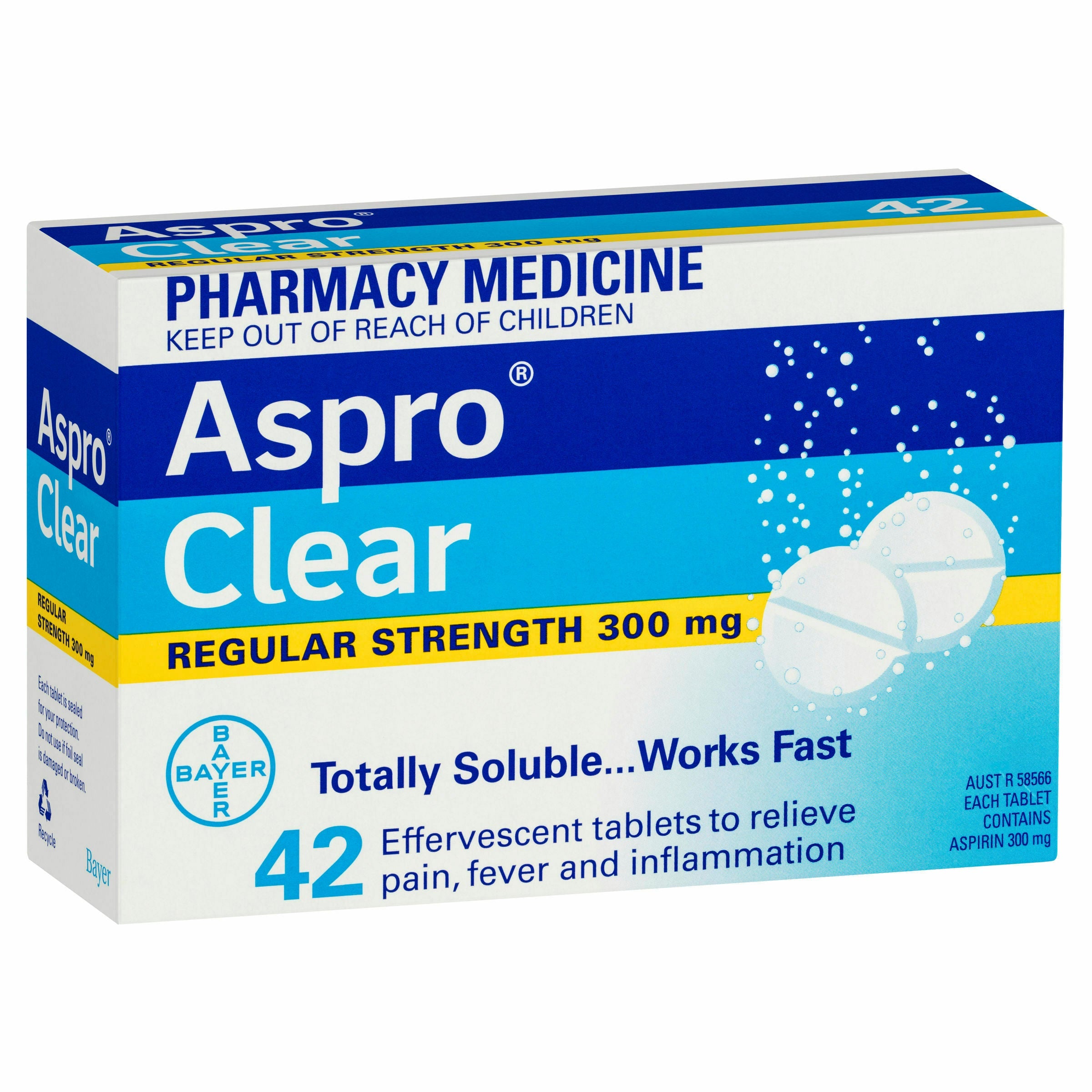 Aspro Clear contains aspirin in an effervescent tablet form. Totally soluble for rapid absorption to give fast and effective temporary relief from: