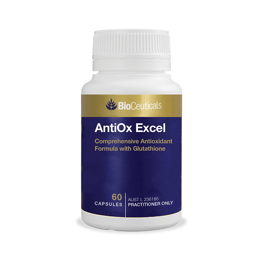 AntiOx Excel provides a comprehensive antioxidant and free radical scavenging formula to support and maintain general wellbeing, cellular health, liver function, and detoxification and inflammatory processes.
