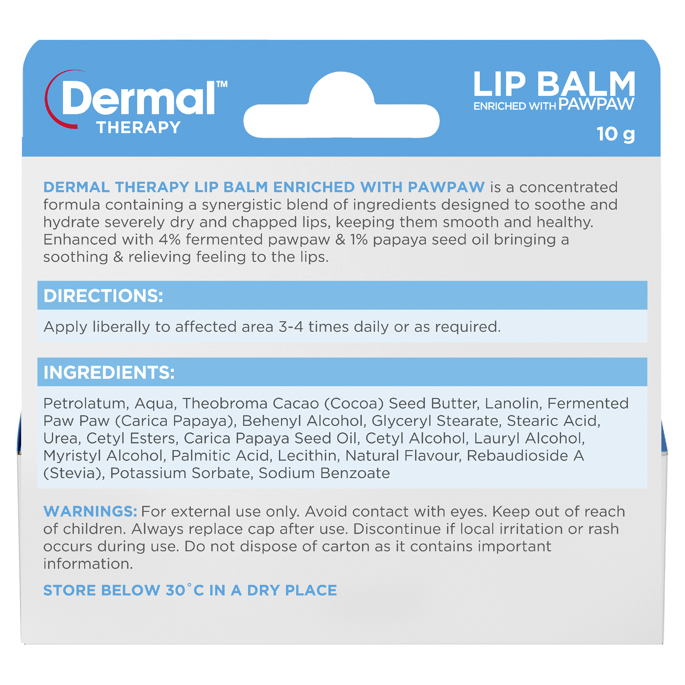 Dermal Therapy lip balm Paw Paw, is made with a blend of ingredients that help soften, hydrate severely dry & chapped lips. It keeps them smooth & healthy.