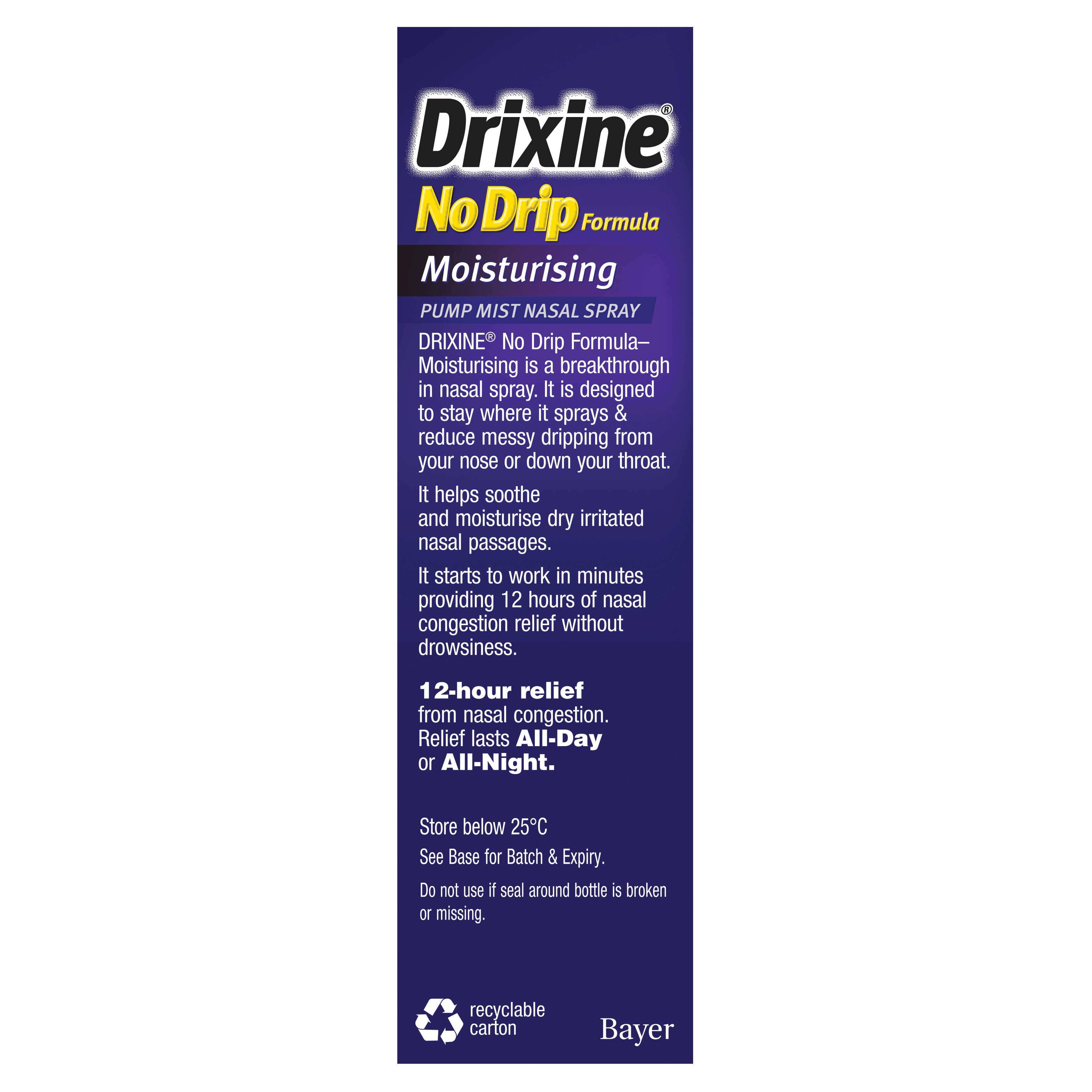 Drixine No Drip Formula Moisturising Pump Mist Nasal Spray provides fast relief from blocked nose due to colds & flu, allergies and sinusitis.