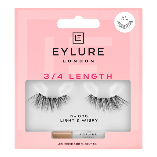 Eylure's ¾ length range is a collection of no fuss, no measure and no trim lashes. With shorter lash bands this collection is perfect for first-time lash users or those who want a quicker lash application. Handmade and reusable for up to 5 wears, every lash pack also comes with a latex free lash glue that is guaranteed to last up to 18 hours.