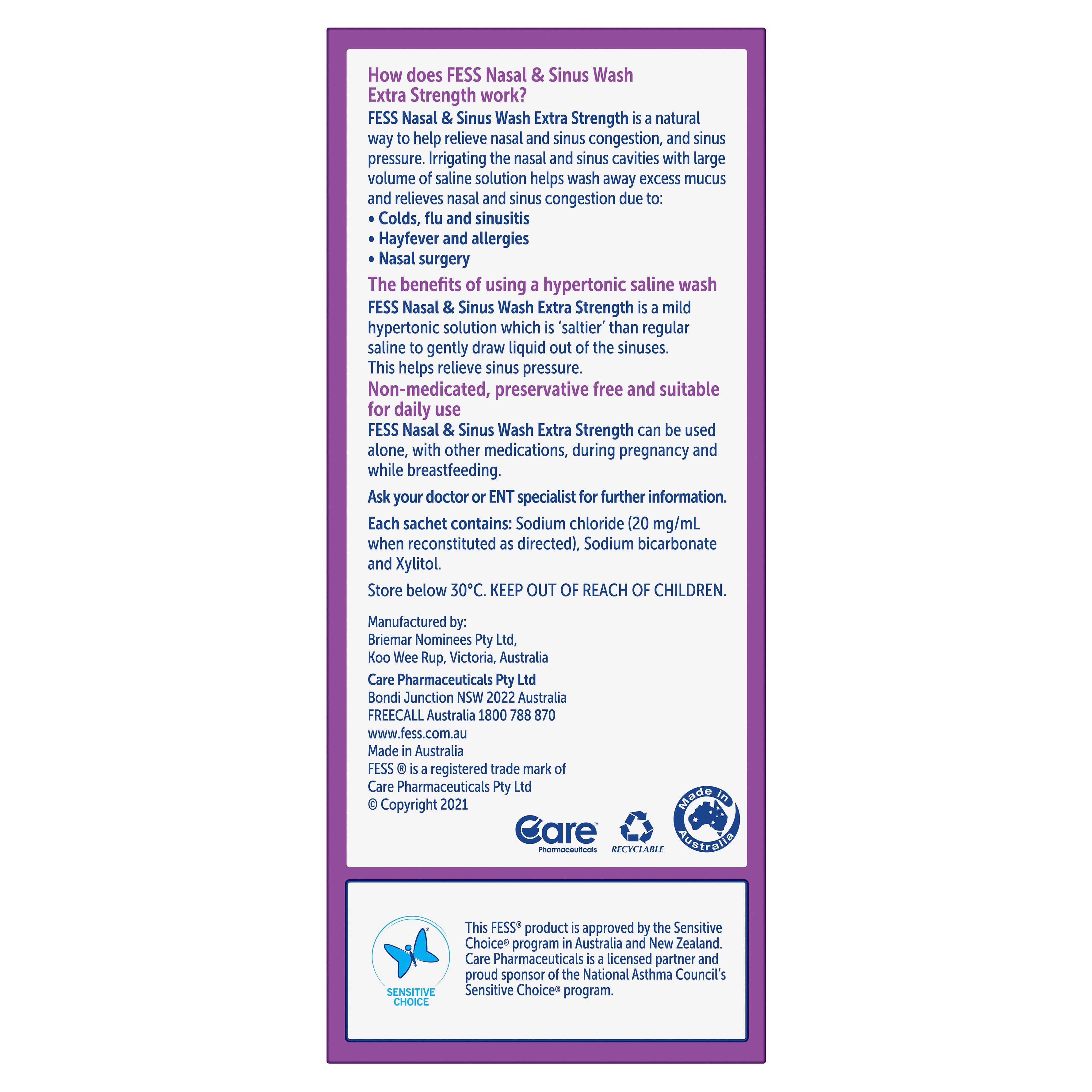 FESS Nasal & Sinus Wash Extra Strength Saline Wash Kit is approved by the Sensitive Choice program in Australia and New Zealand.