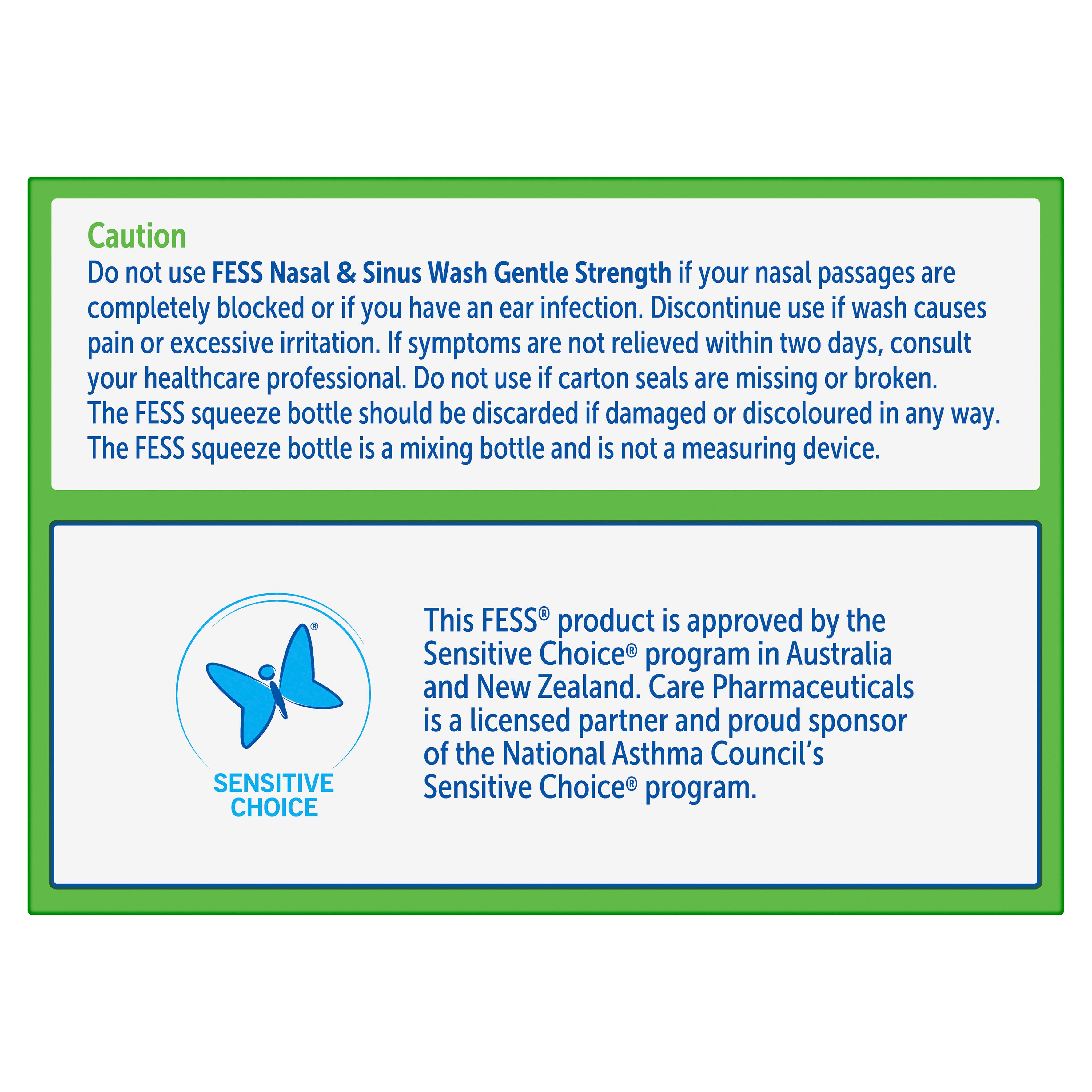 FESS Nasal & Sinus Wash Gentle Strength Refill Sachets is approved by the Sensitive Choice program in Australia and New Zealand.