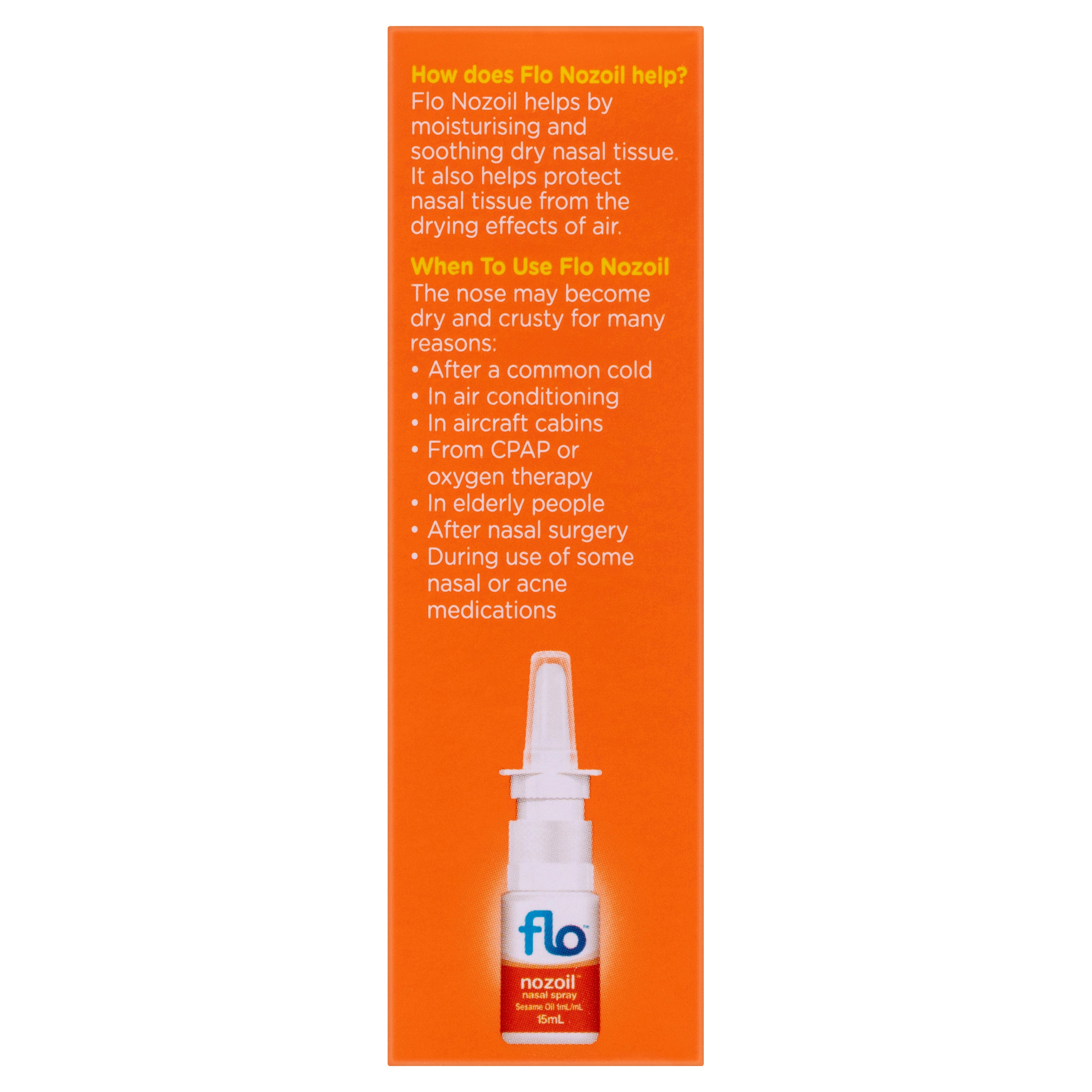 FLO Nozoil is a preservative free, soothing nasal spray that helps to relieve dryness and moisturise the nose using seasame seed oil and all three natural forms of Vitamin E (alpha, beta and gamma).