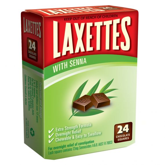Laxettes Chocolates are used for the treatment of constipation and are the only chocolate laxative on the market and are available in packs of 24 and 48 easy to consume squares. Laxettes contain Senna which is recognised as one of the most popular and reliable natural laxatives. The Laxettes brand is over 100 years old and the longest running laxative brand still in market today.