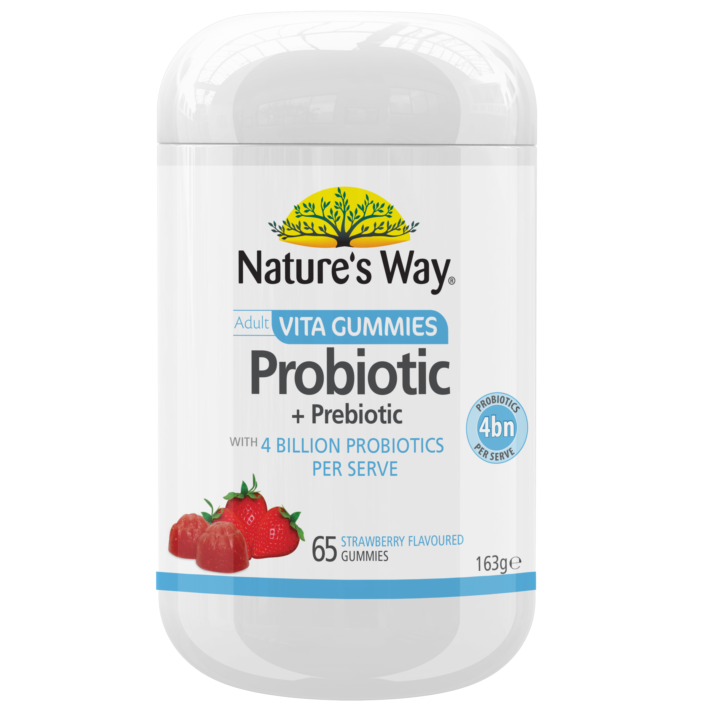 Nature’s Way HIgh Strength Adult Vita Gummies Probiotic + Prebiotic is a soft gummie which contains 4 billion good bacteria plus inulin a prebiotic to keep your good gut bacteria happy. They are an easy & delicious way to top up your daily probiotic intake. This soft gummie with probiotics requires no refrigeration and is 94% sugar free.