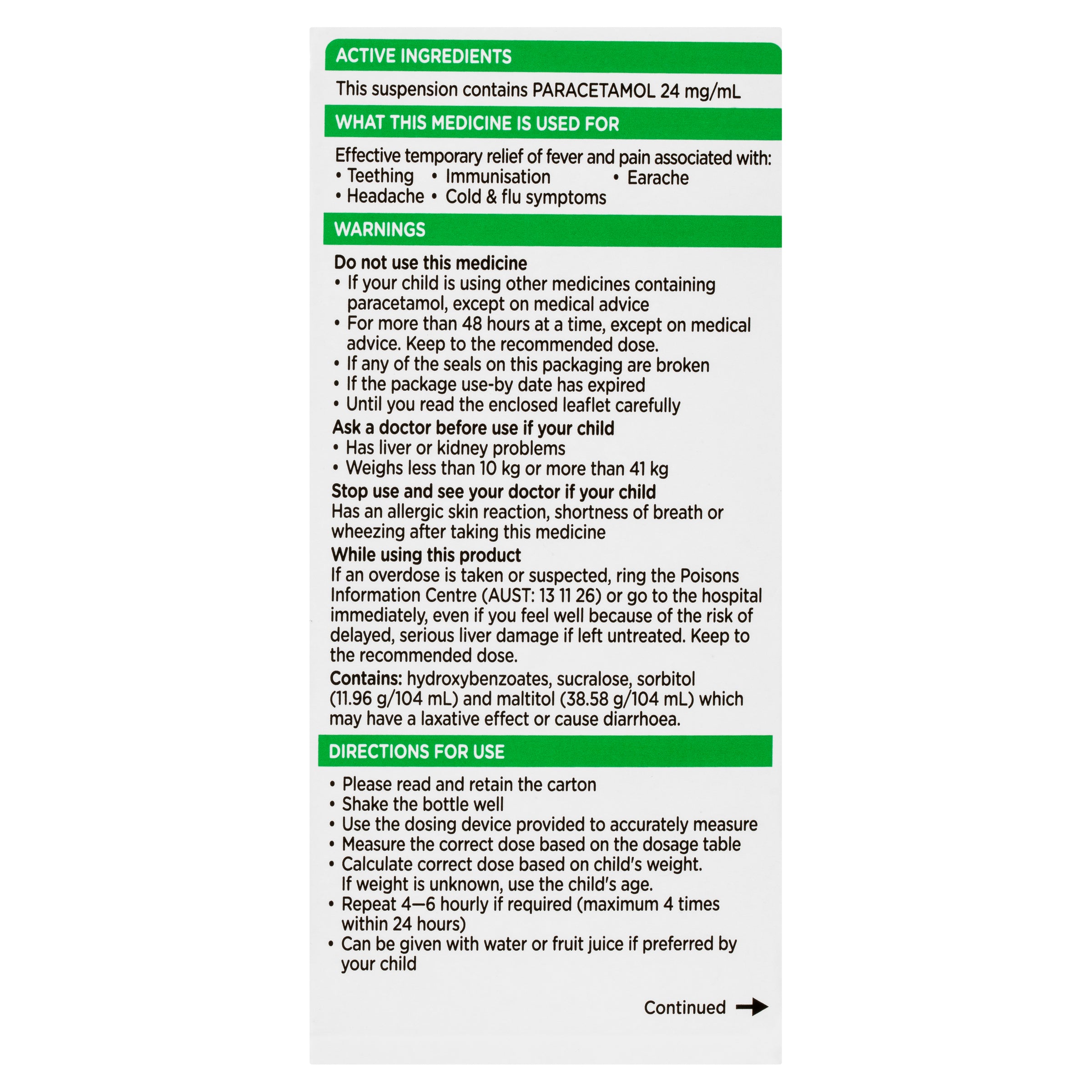 Children’s Panadol Colourfree suspension 1-5 Years is part of the Children’s Panadol range of paracetamol-based pain relief, which has been trusted for children’s pain and fever for over 60 years.
