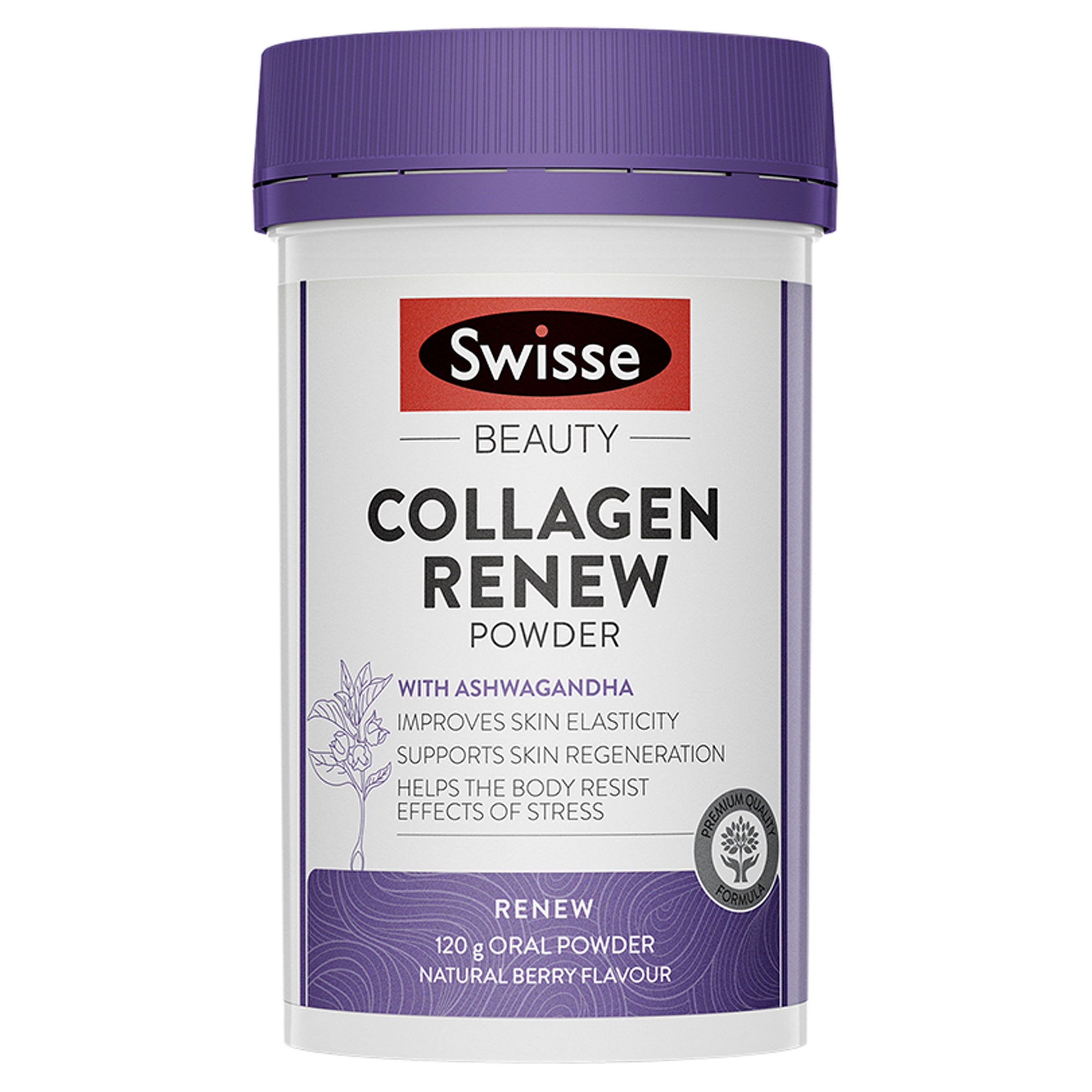 Swisse Beauty Collagen Renew Powder is a premium quality beauty supplement featuring Collagen Peptides, Vitamin C and Ashwagandha. This great tasting formula helps improve skin elasticity and firmness, support skin regeneration and help the body adapt to the effects of stress.