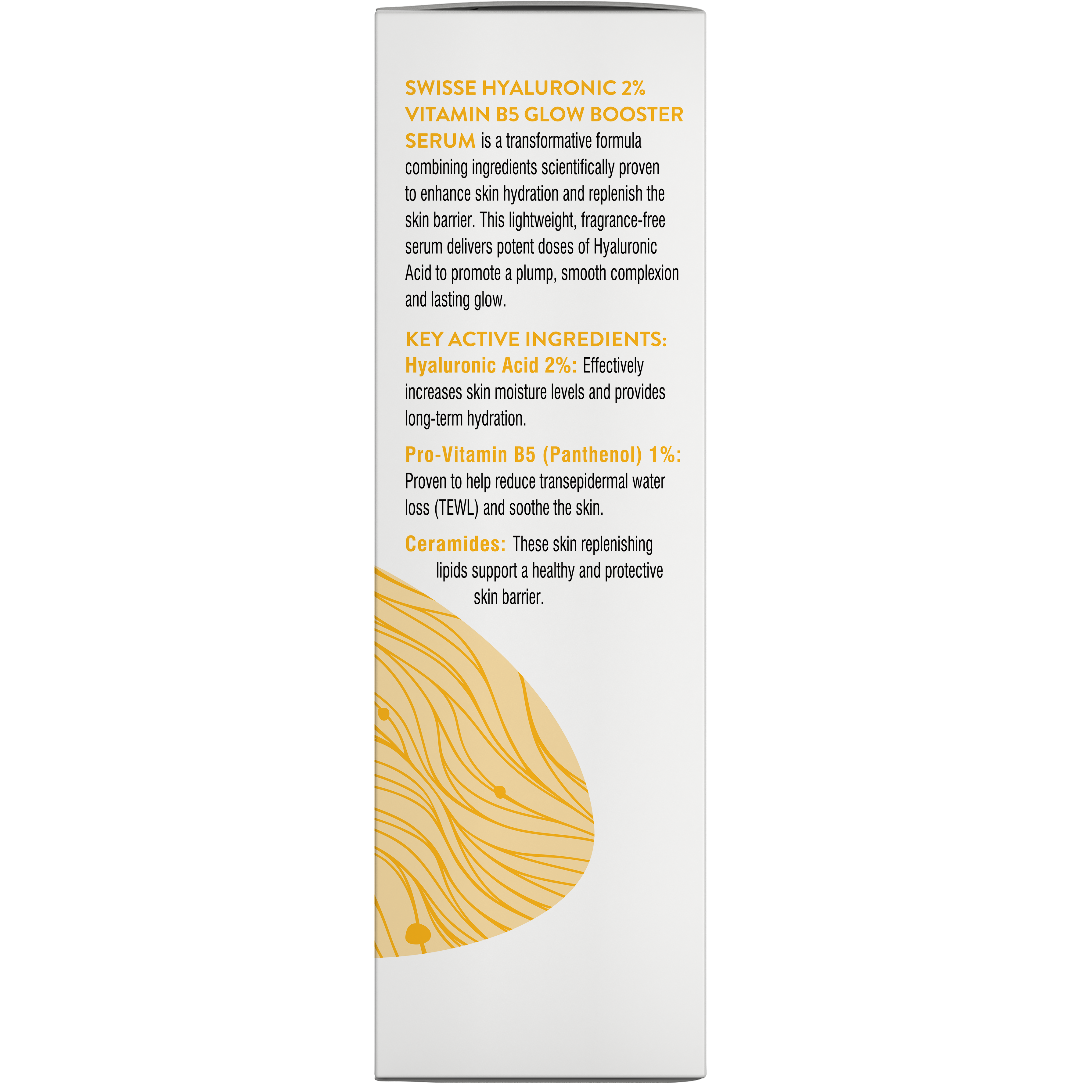 Swisse Hyaluronic 2% Vitamin B5 Glow Booster Serum makes ultra-hydrated, dewy skin a reality. Thanks to a combination of hyaluronic acid, vitamin B5 and ceramides, this transformative formula boosts skin hydration for a fresher, smoother complexion and an all-day glow.