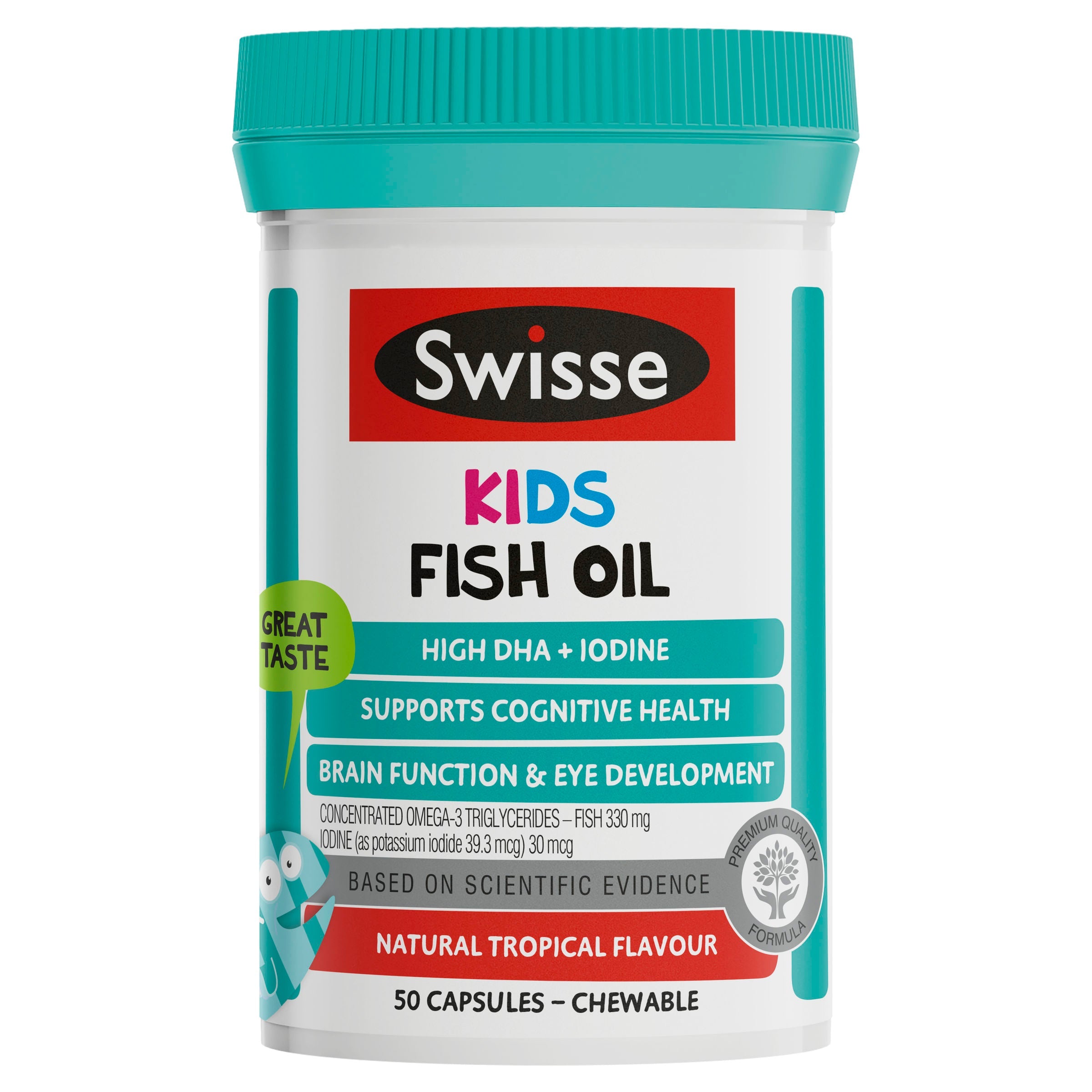 BENEFITS: Swisse Kids Fish Oil is a premium quality, great tasting, tooth friendly formula containing the omega-3 fatty acids EPA and DHA, along with iodine to support cognitive health and brain function as well as eye development in children.