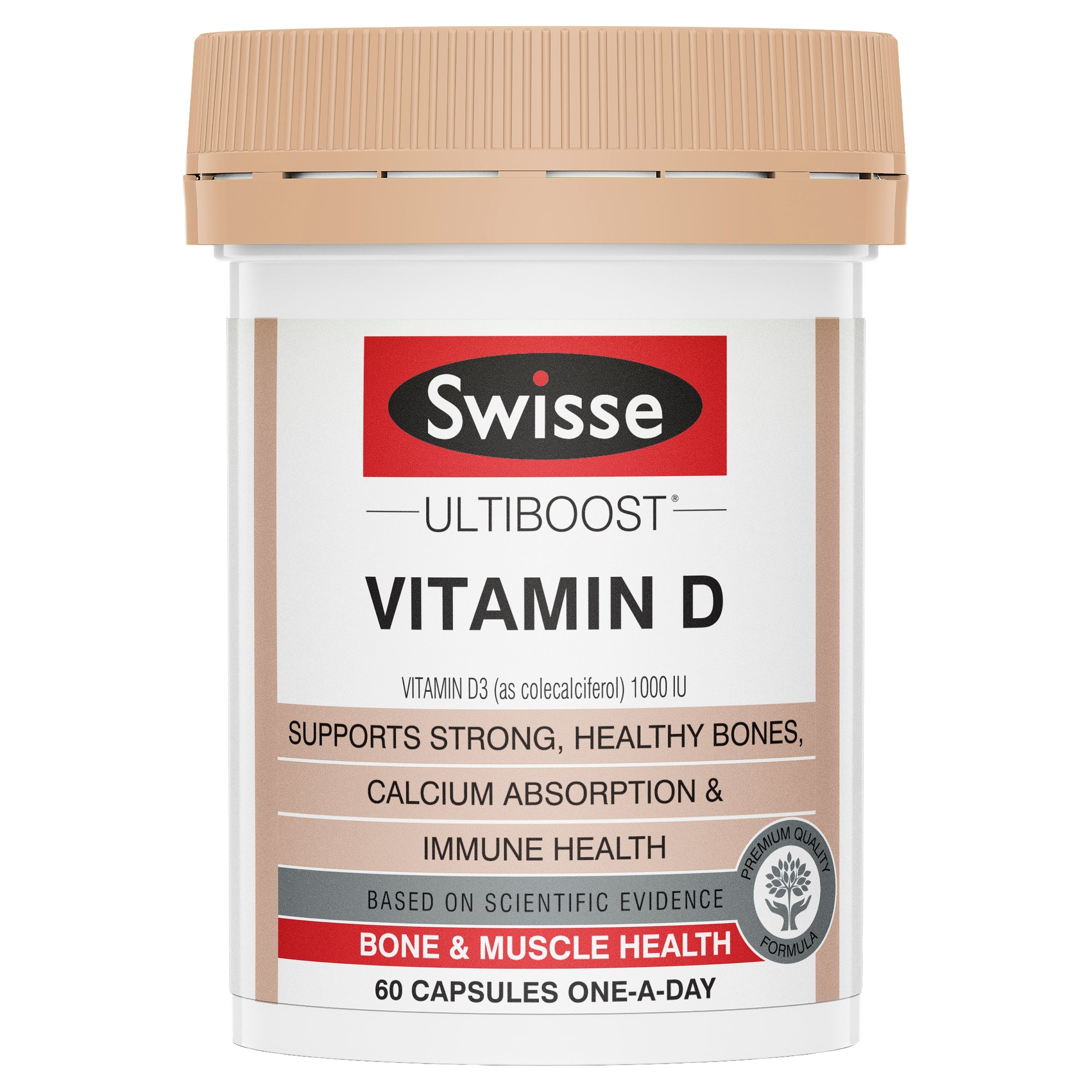Swisse Ultiboost Vitamin D is a premium quality formula containing 1000 IU of naturally derived vitamin D3 to support bone and teeth health. Bone & Teeth Health: Supports the development and maintenance of healthy bones and teeth. Increased Absorption: Vitamin D3 assists the absorption and utilisation of calcium, which helps maintain healthy bone density. Vitamin D3 is retained in the bloodstream more effectively when compared to vitamin D2 (synthetic). Muscle Health: Vitamin D helps support muscle function. Immune Health: Supports a healthy immune system. The human skeleton consists of 206 bones that provide a framework for the body to help maintain shape, protect vital organs and provide a place for muscles to attach. Bones also function as a site for mineral storage and blood cell formation. Very few foods naturally contain adequate levels of vitamin D, so regular exposure to sunlight is required for the body to produce vitamin D3. Modern lifestyles often reduce the time exposed to sunlight, which increases the need to obtain vitamin D3 from other sources. Swisse Ultiboost Vitamin D has been formulated based on scientific evidence to provide a naturally derived source of vitamin D3 in a convenient, one-a-day dose.