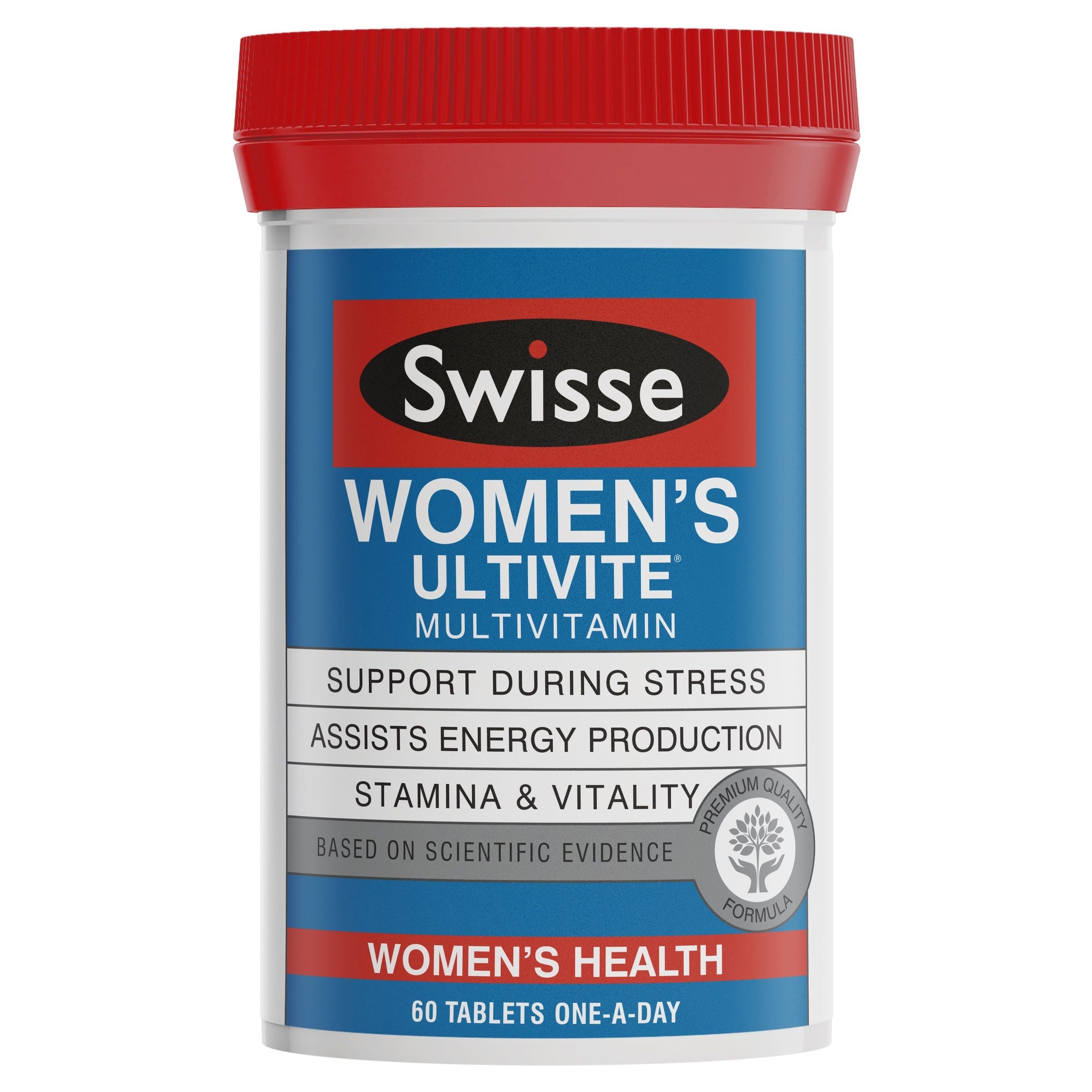 Swisse womens ultivite is a premium quality formula multivitamin containing 50 vitamins, minerals, antioxidants and herbs tailored for women to help provide support during stress and assist with energy production, stamina and vitality.