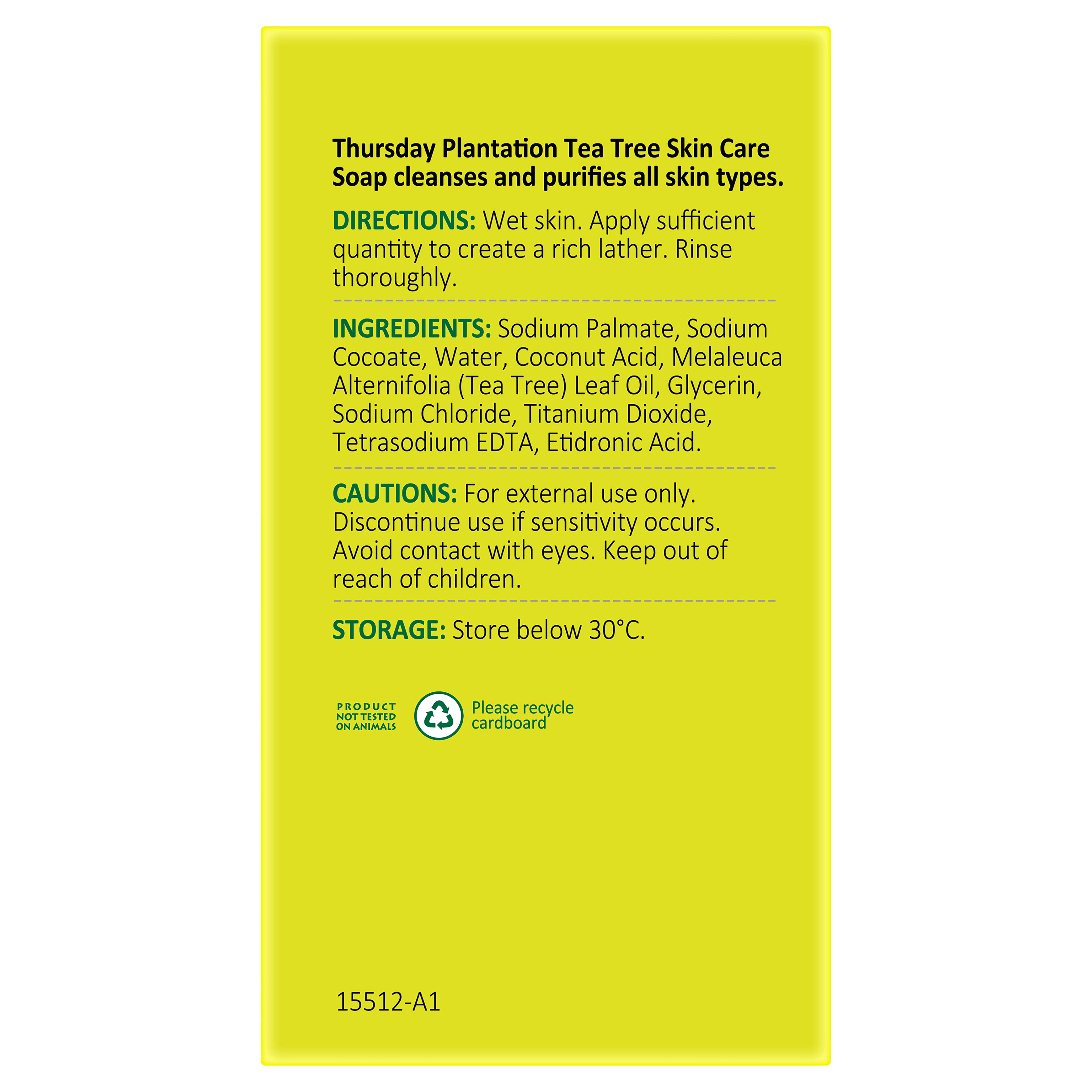 Thursday Plantation Tea Tree Skin Care Soap cleanses and purifies all skin types.