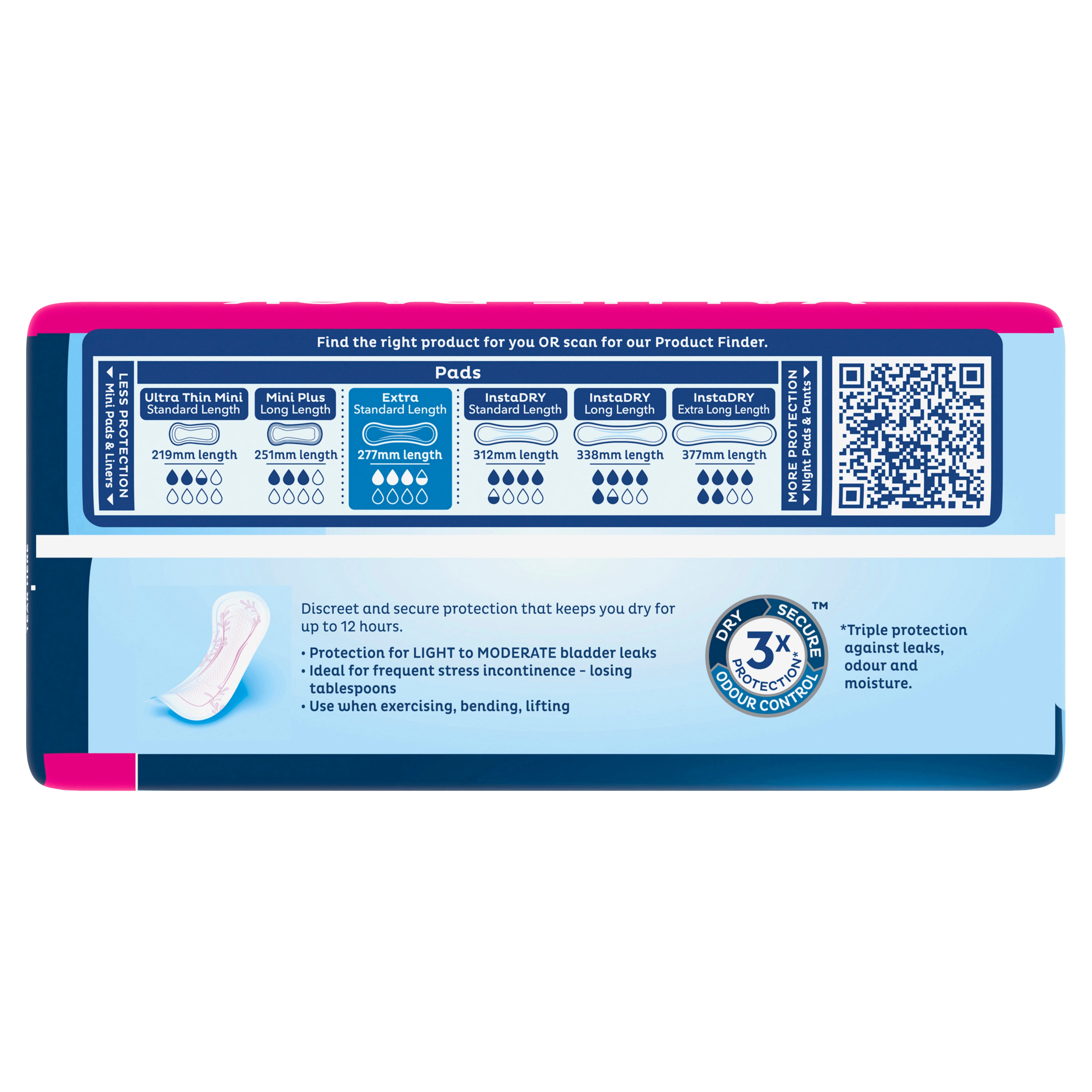 TENA Pads Extra Standard Length offers discreet and secure protection for medium bladder weakness.