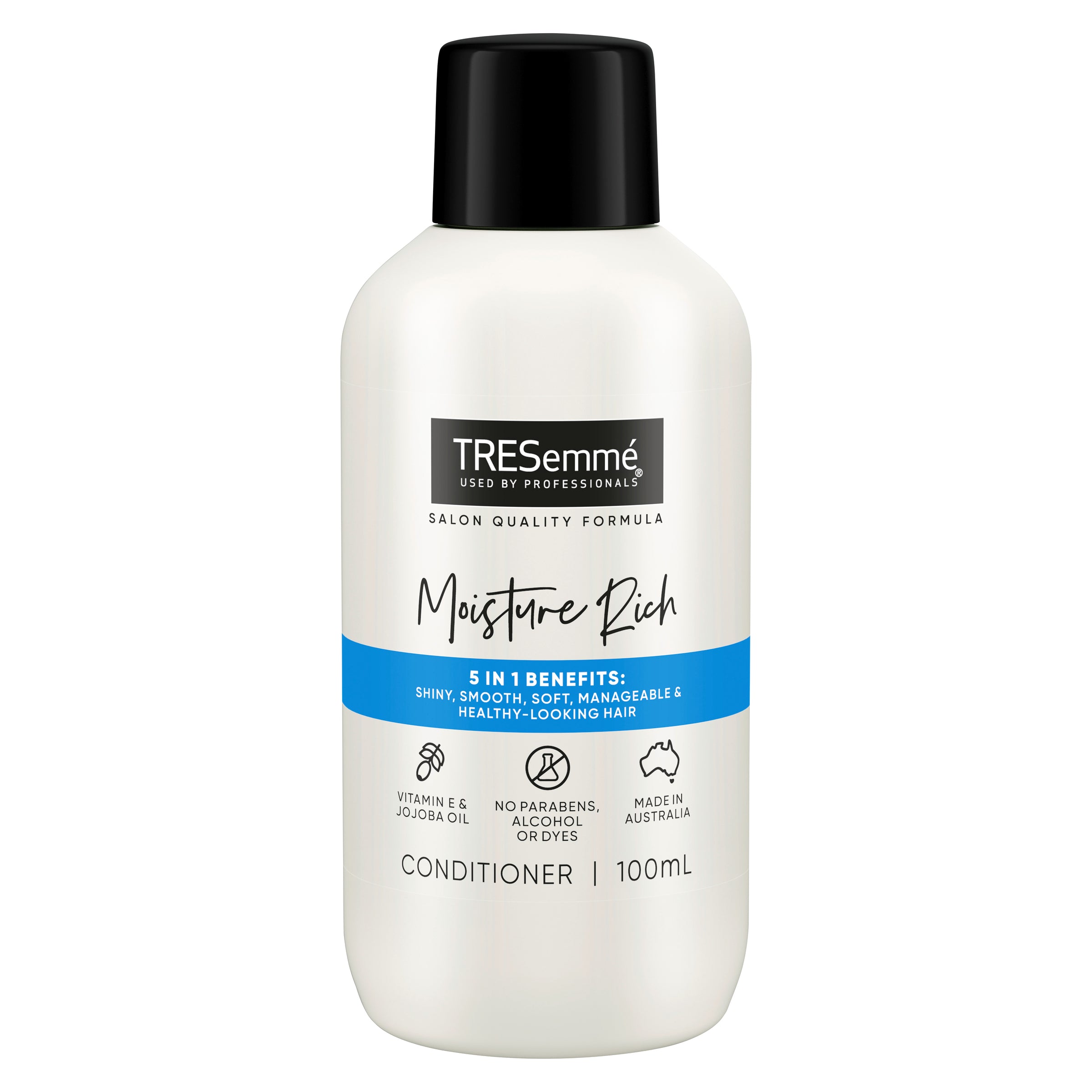 TRESemmé's Moisture Rich Conditioner is specially formulated for dry, damaged hair. Our Moisture Rich shampoo and conditioner, with vitamin E & Arginine, delivers intense moisturisation with 5 in 1 benefits: shiny, smooth, soft, manageable and healthy looking hair. Free from parabens, alcohol and dyes, this moisturising conditioner is light enough for daily use and the moisture-balanced system transforms your dry hair into silky, manageable, salon and healthy looking locks. Since our salon beginnings in 1948, TRESemmé has been creating professional quality hair care products to help you achieve the look and style you want, every time. TRESemmé understands how great hair gives you the confidence to walk taller every day. Inspired by stylists and tested in salons, the products are designed to help you achieve a salon gorgeous hair every day. They are salon quality formulas without the salon price tag. TRESemmé does not test on animals and is PETA approved worldwide. Bottles are made in Australia, with 50% Australian Recycled Plastic and are recyclable. Directions: After shampooing with TRESemmé Moisture Rich, apply conditioner through hair. Run a wide tooth comb or fingers from root to tip to detangle. Leave on for 2-3 minutes then rinse thoroughly then style with your favourite TRESemmé products. For more secrets from our professional stylists and details on TRESemmé styling appliances & tools, visit www.tresemme.com/au, Professional quality at your fingertips. Can cause eye irritation. In case of contact with eyes, rinse thoroughly with water.
