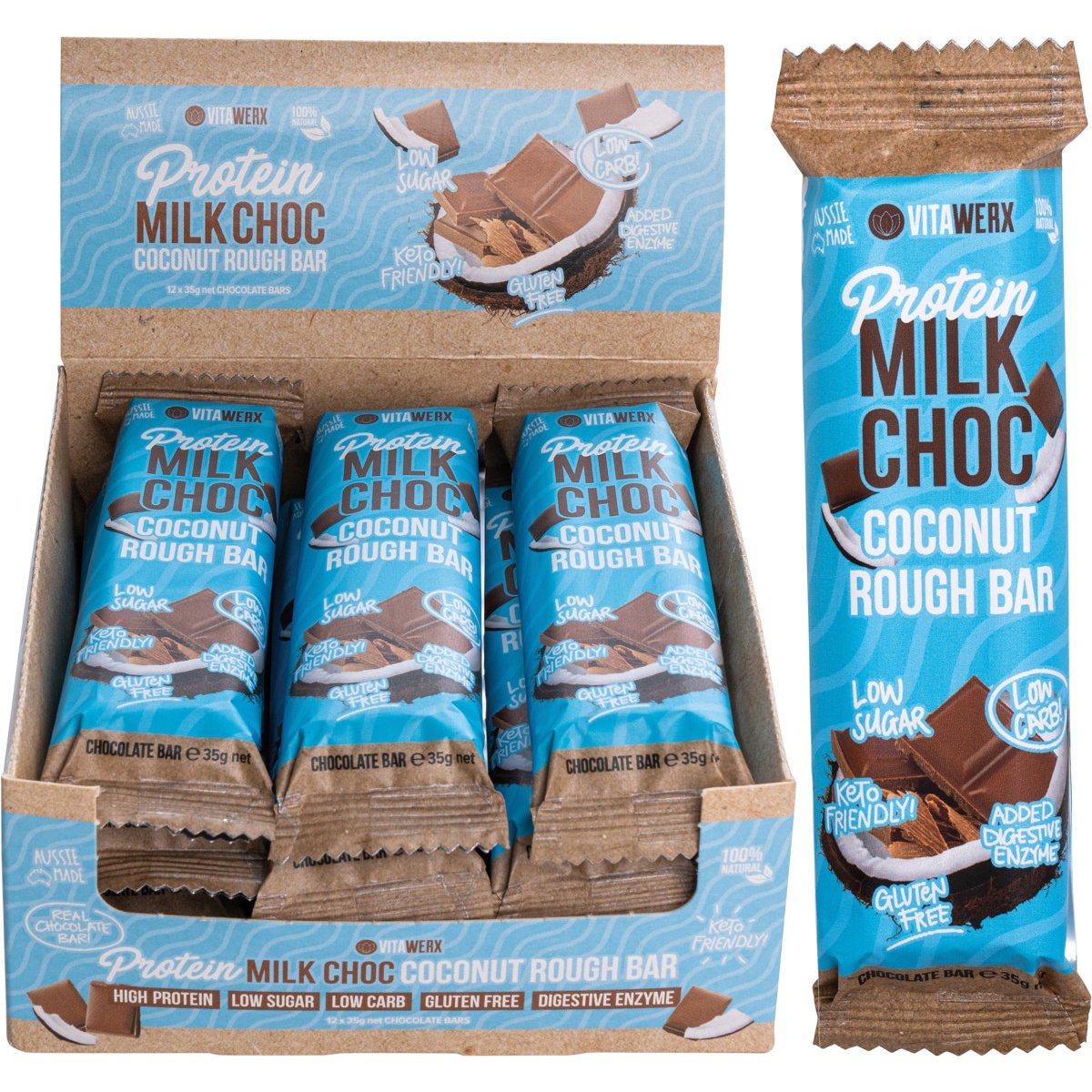 VITAWERX Protein Milk Chocolate Bar Coconut Rough 12x35g